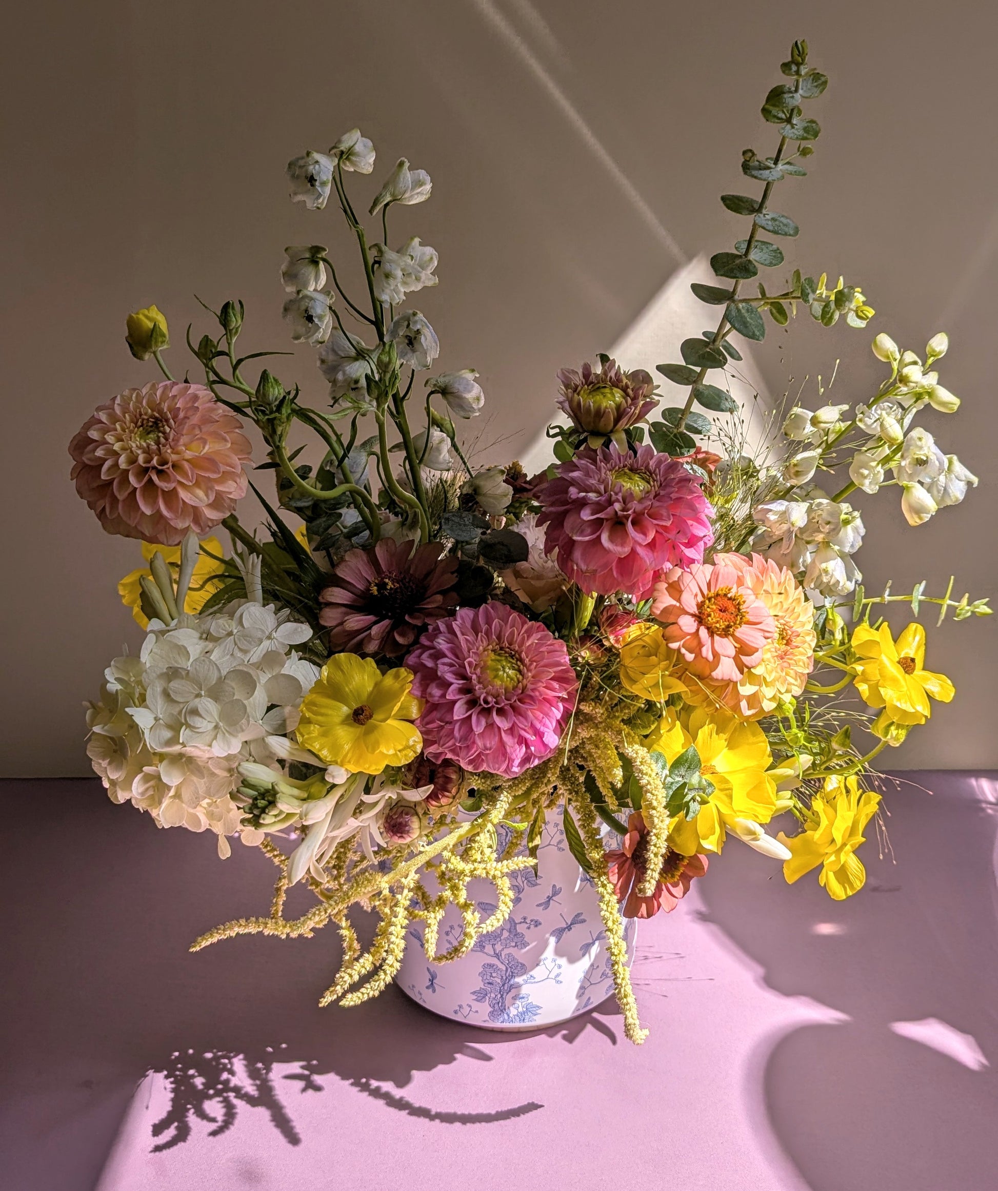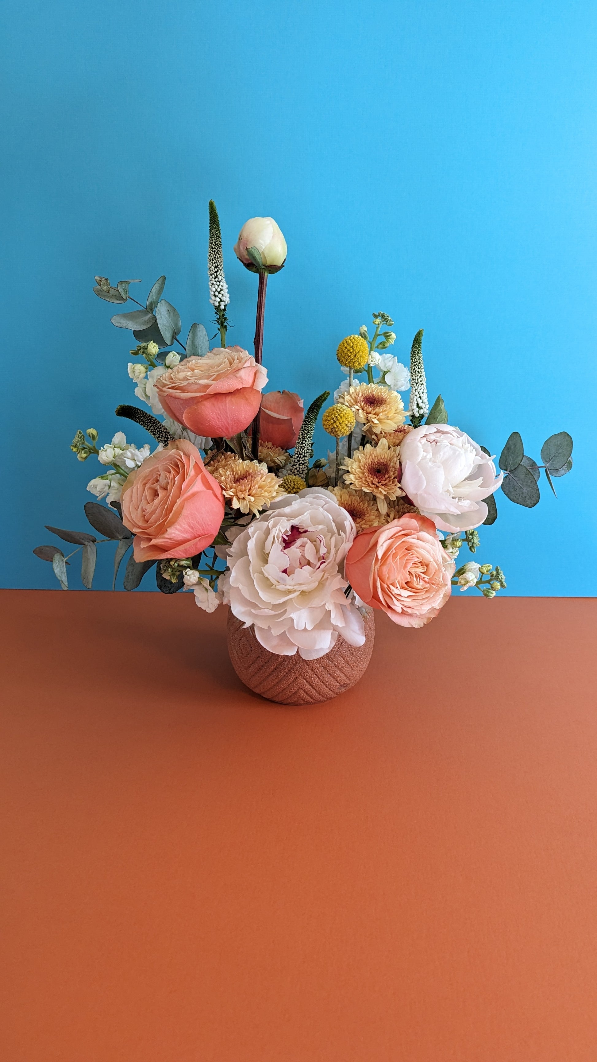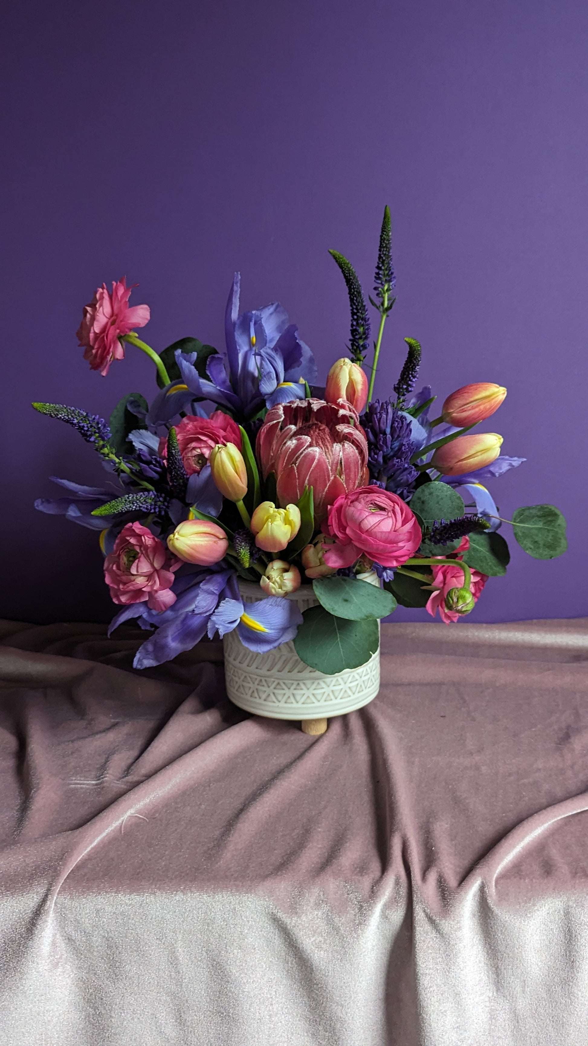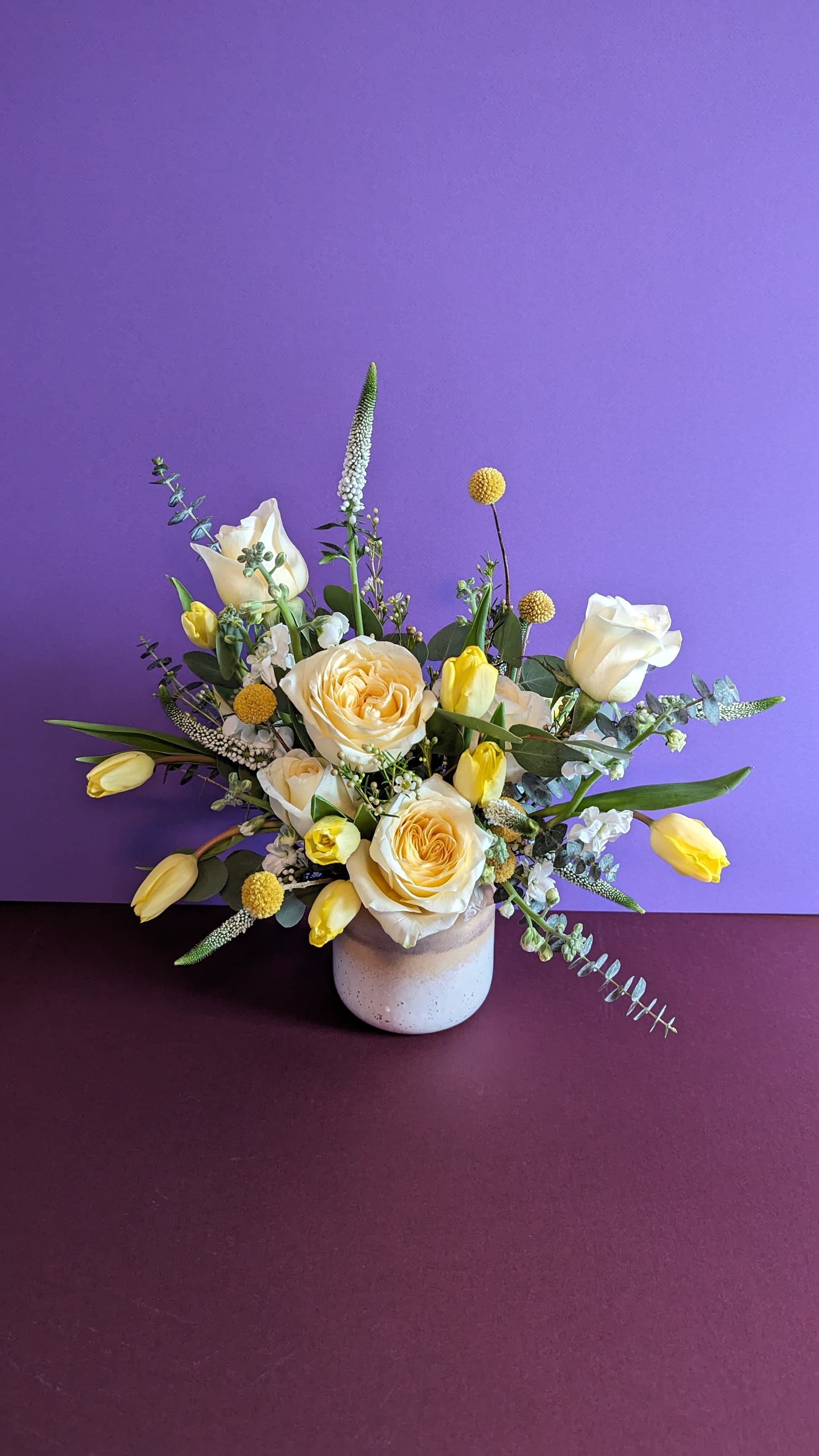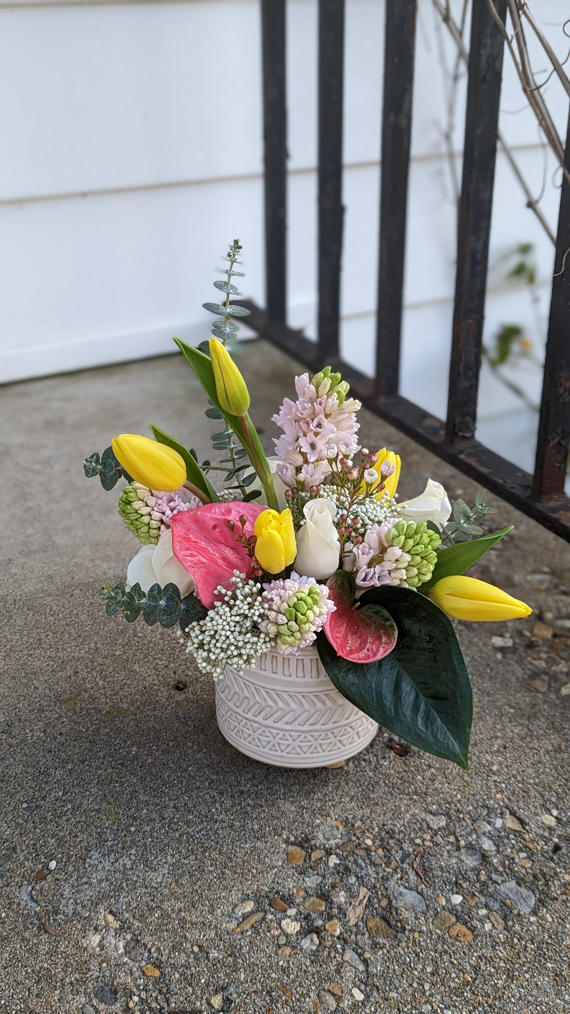 - Photos represent the feel of the arrangement more than the exact colors or flowers. All orders are individually shopped for and flowers are chosen based on availability and freshness. If there is something about the arrangement that is very important to you (like a color or particular flower) please let me know at checkout and I will do my best to include it.
